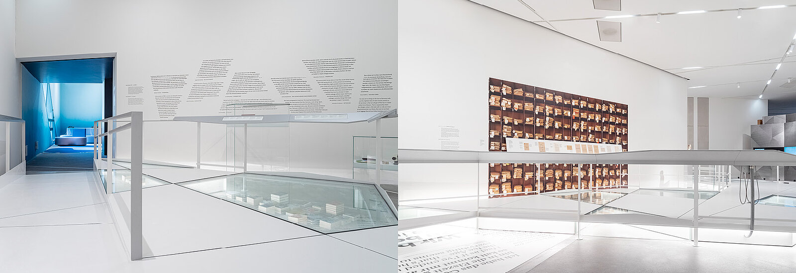 Der Zick-Zack-Bau von Daniel Liebeskind aus Titanzink mit unterirdische Achsen, schiefen Wänden und geometrischen Fugenbildern an Decken, Wänden und Böden ist längst als Museumsgebäude eine Stilikone geworden. So stand es an die erste Dauerausstellung des Jüdischen Museums in Berlin dem herausfordernden Gebäude von Daniel Libeskind durch eine Neugestaltung gerecht zu werden.